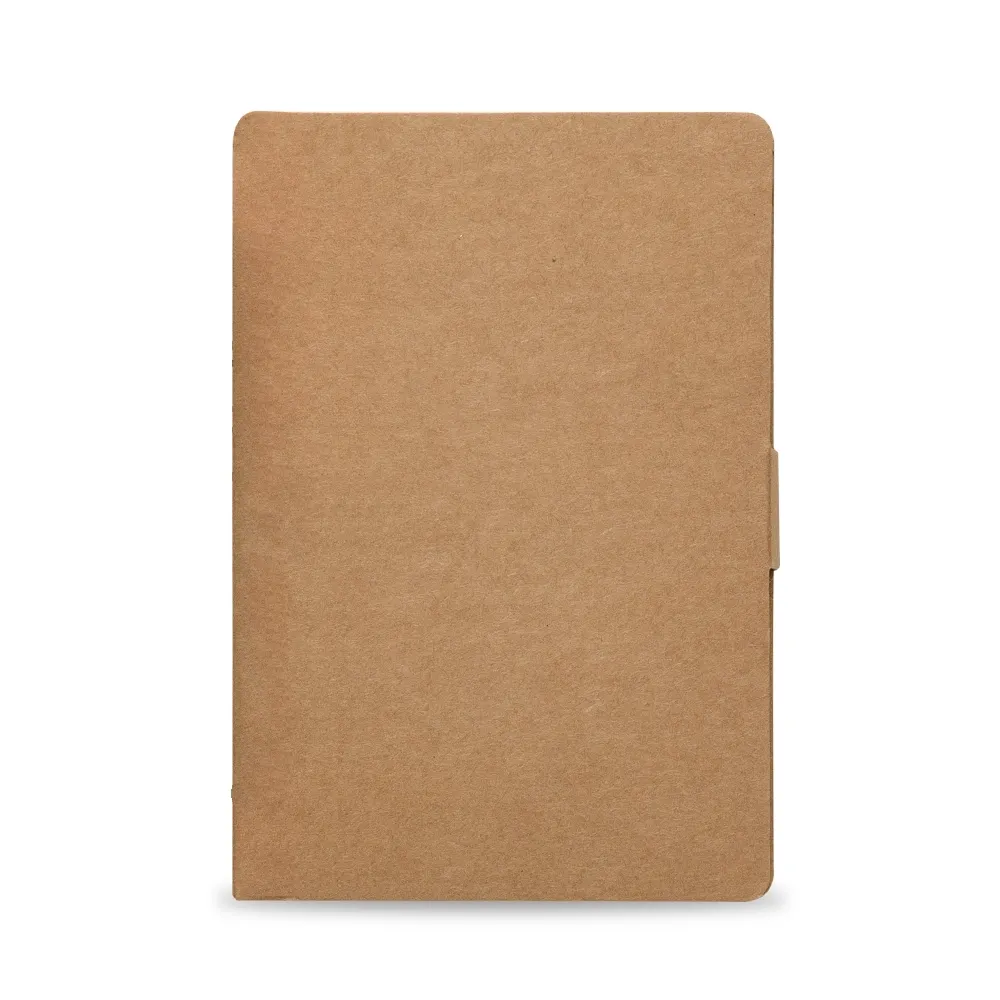 Bloco de anotações ecológico, material em kraft. Possui uma trava na própria capa, cinco blocos autoadesivos coloridos com aproximadamente 25 folhinhas , bloco autoadesivo amarelo com aproximadamente 25 folhas e bloco grande com aproximadamente 70 folhas. OBS.: IMAGEM MERAMENTE ILUSTRATIVA, não acompanha caneta!