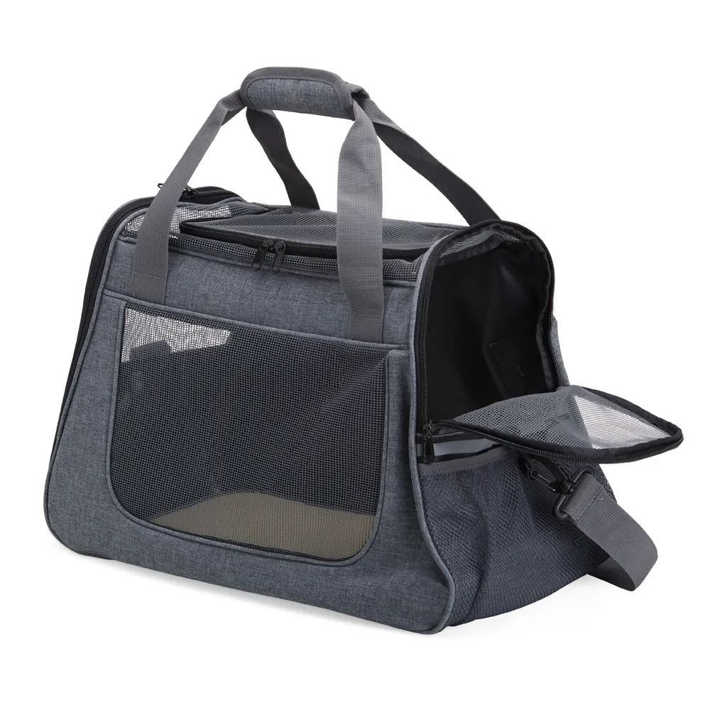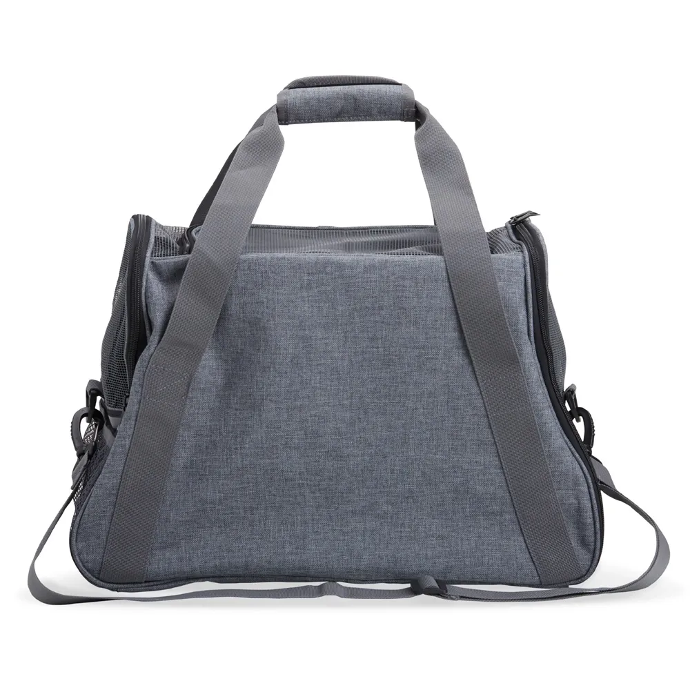 Bolsa para transporte de pets, confeccionada em tecido Oxford com bolso lateral. Seu tapete dupla face, com uma camada aveludada, foi projetado para proporcionar o máximo conforto ao pet. Equipada com telas respiráveis em nylon, esta bolsa apresenta uma abertura superior e duas aberturas laterais com faixas refletivas, sendo uma delas com abertura completa, permitindo uma experiência de transporte arejada, com entrada e saída prática para o pet. As alças de mão, estrategicamente equipadas com suporte para junção, garantem conforto durante o transporte manual, enquanto a alça transversal proporciona um transporte ergonômico com distribuição mais eficiente do peso.
