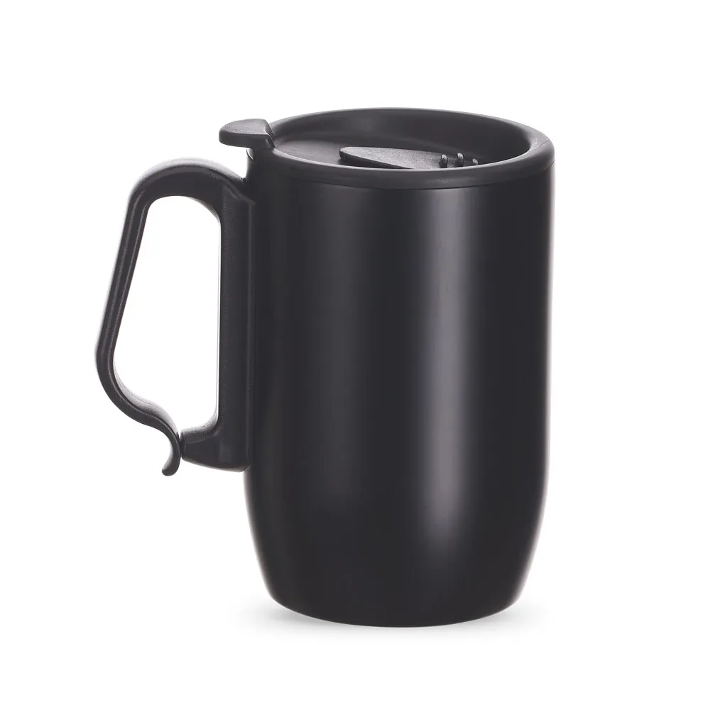 Caneca Térmica em aço inox de 350ml, alça de mão plástica tipo mosquetão, tampa com vedação e base de apoio em EVA.\r\n\r\nConserva líquidos : ☀️ 2 horas ❄️ 4 horas