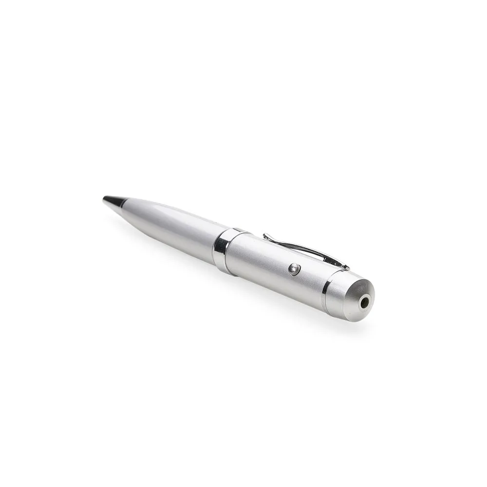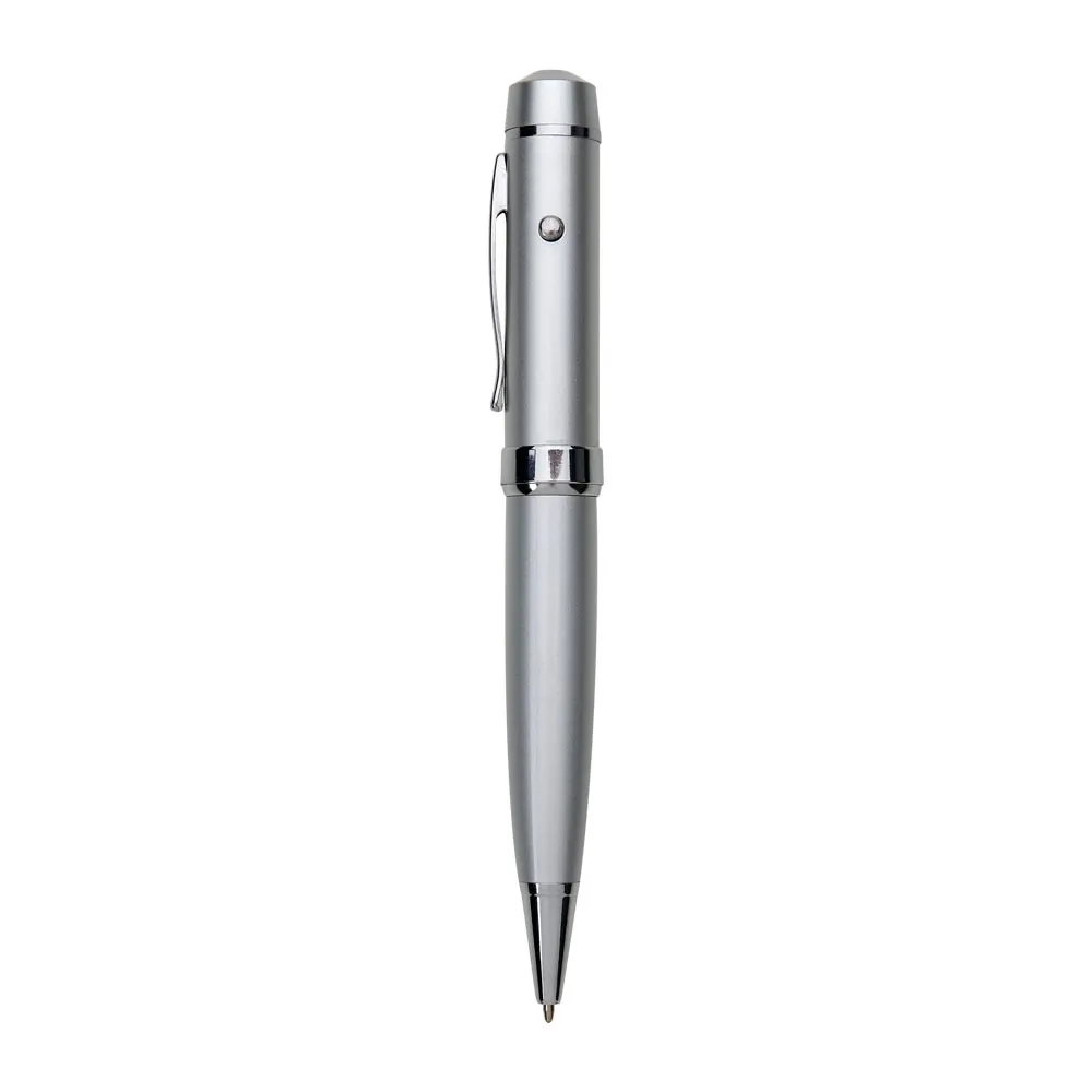 Caneta metálica pen drive 4GB/8GB com laser. Carga esferográfica azul 1.0 mm. Acionamento por rotação.