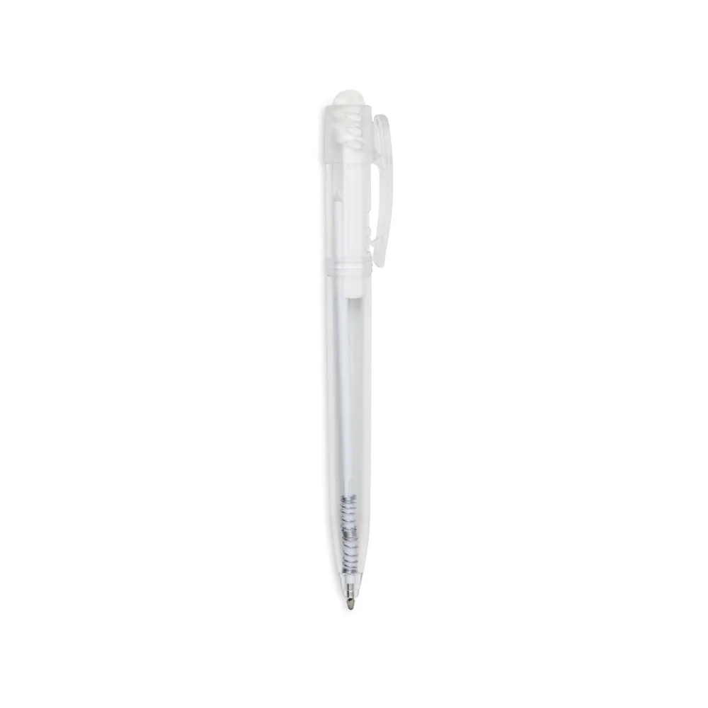 Caneta plástica translúcida com carga esferográfica azul 1.0 mm e acionamento por clique.\r\n\r\nOBS.: PEDIDOS MÍNIMO DE 50 PEÇAS!