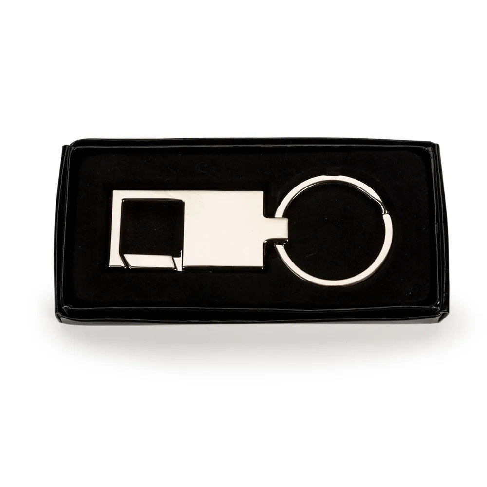 Chaveiro de metal brilhante/espelhado com mosquetão(sem trava), possui detalhe de rebite frente e verso.