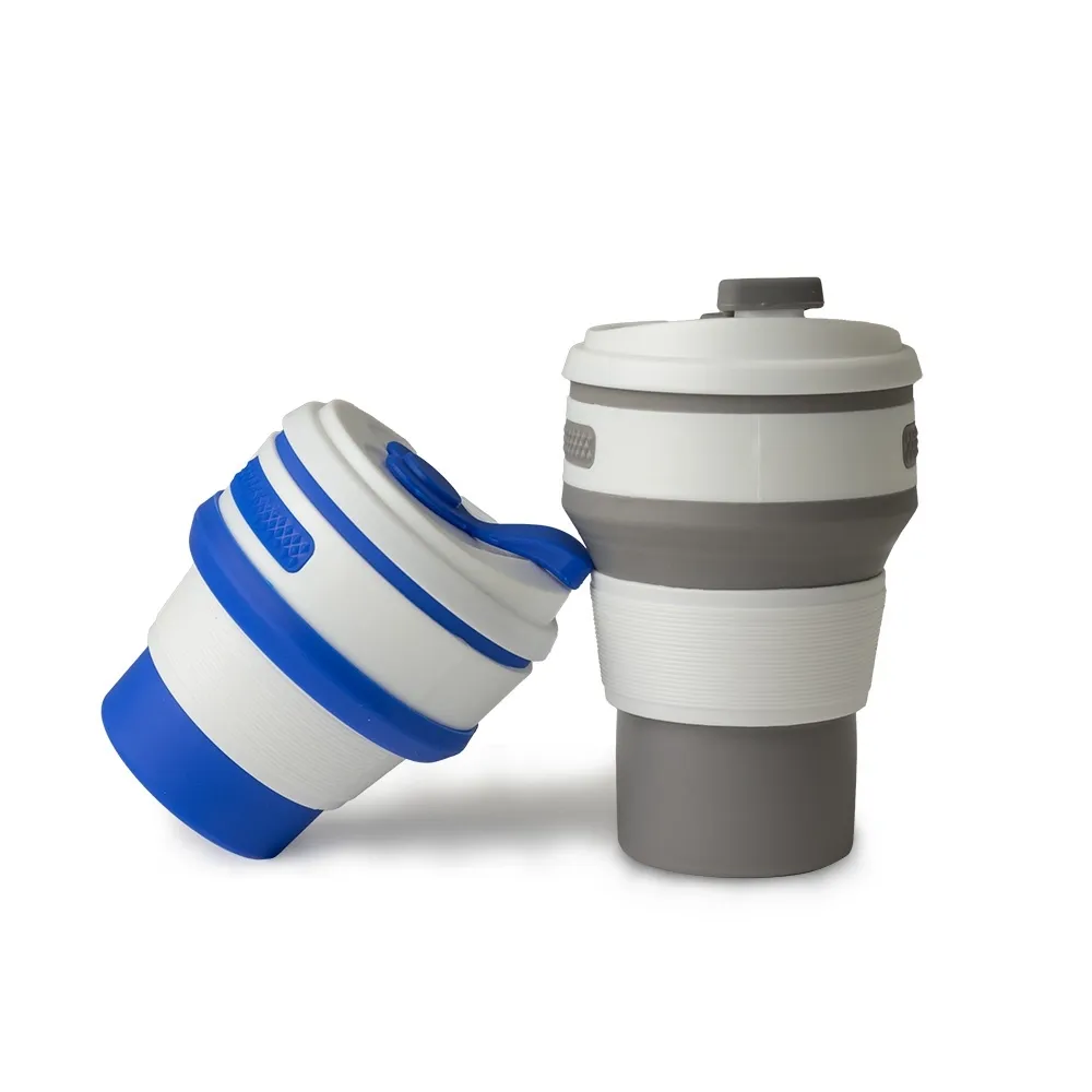 Copo de silicone retrátil com capacidade de 350ml, livre de BPA. Contém aderência ao segurar na parte superior do copo, tampa de encaixe com bocal e protetor. Acompanha manga protetora antiderrapante.
