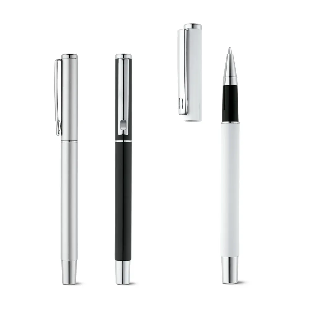 Roller em alumínio com clipe de metal. Escrita em preto. ø10 x 136 mm