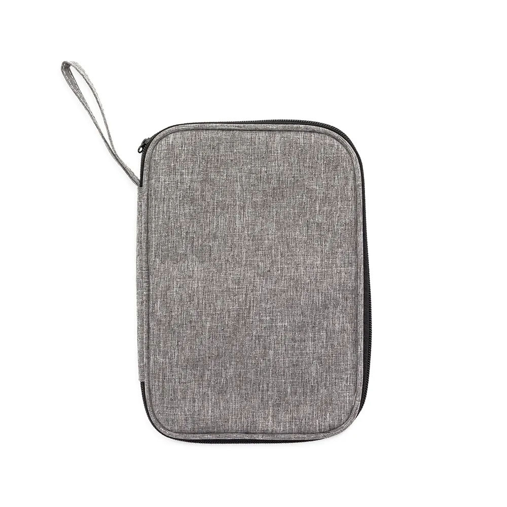 Estojo confeccionado em poliéster resistente à água. Conta com bolso interno em tela de nylon e fechamento em zíper e divisórias em diferentes tamanhos em elástico. Possui alça de mão para transporte.