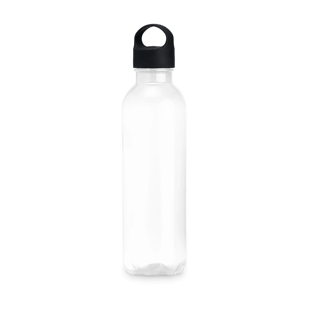 Garrafa PET 650ml com tampa plástica e alça para transporte.\r\n