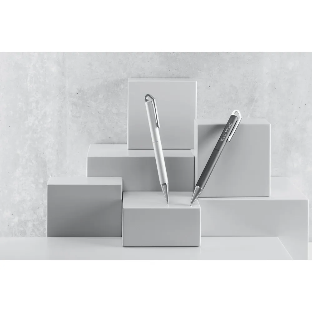 A esferográfica Hook Matte é elegante e sofisticada, que dificilmente passa despercebida. Trata-se de uma esferográfica em bronze, com mecanismo twist, cromagem brilhante e clipe com mola em ferro, que lhe garante força e flexibilidade. A ponteira em bronze com cromagem brilhante e o corpo com duplo acabamento (interior platinado e exterior laqueado mate) reforçam, não só o design elegante, como a qualidade da Hook Matte. Tem recarga em metal G2, com tinta Dokumental® azul, até 2km de escrita. Fornecida em caixa presente. ø11 x 138 mm | Caixa: 187 x 53 x 28 mm