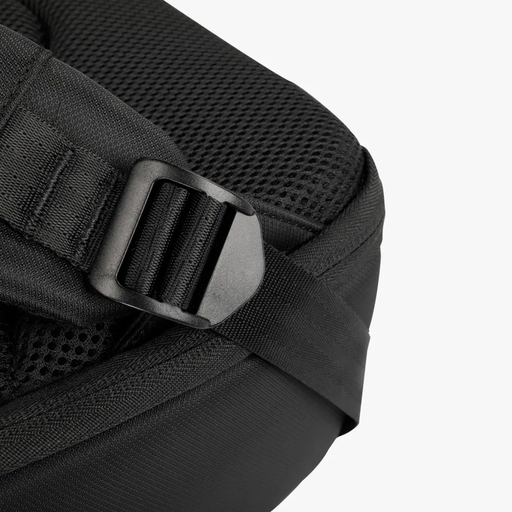 Mochila de 25 litros premium em poliéster impermeável com quatro compartimentos, sendo um deles para notebook 15,6 e tablet 10,5. Com divisórias internas para documentos e bolso telado com zíper, a mochila possui adaptador USB externo, área costada e alças para as costas com revestimento espumado e alça de engate paa malas de viagem.