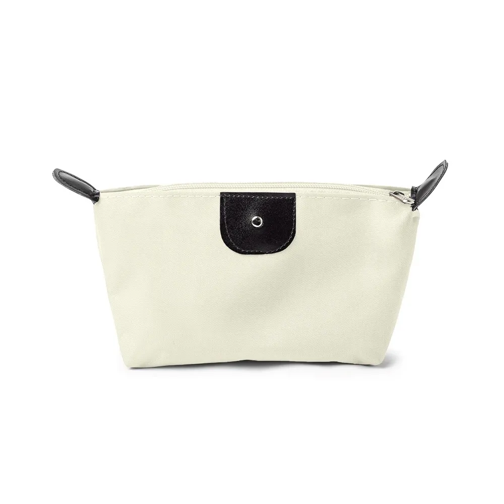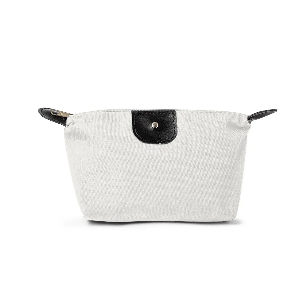 Nécessaire em tecido nylon oxford, resistente a água com detalhes em couro sintético e parte interna com revestimento emborrachado, elegância e simplicidade no mesmo item. Possui um detalhe circular brilhante no couro frontal.