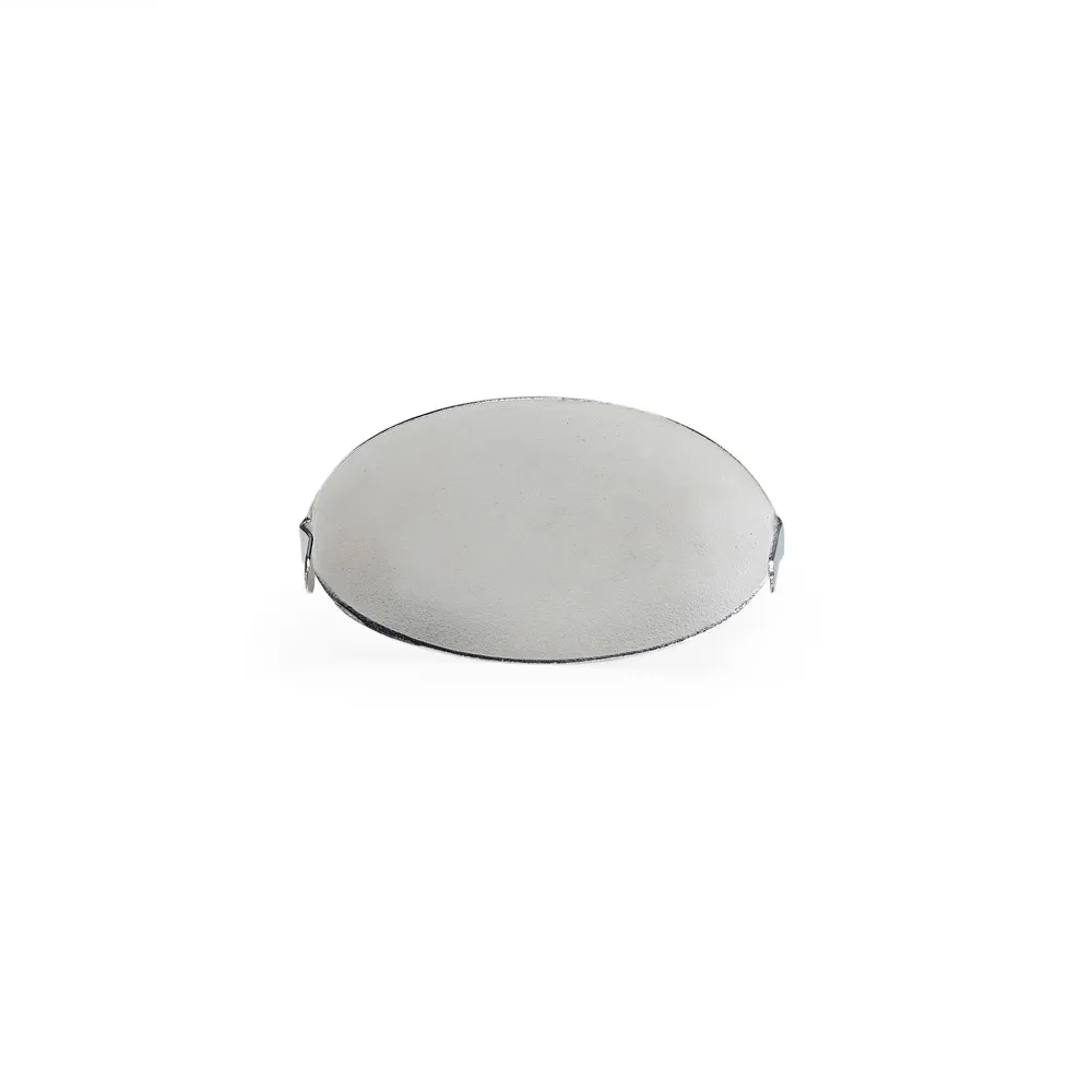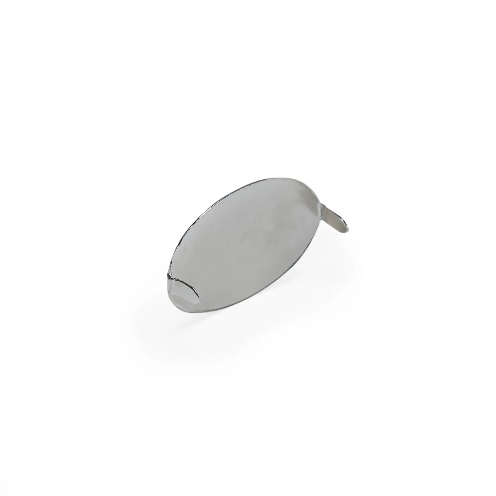 Plaquinha metálica oval para personalização. Possui hastes com ponta na parte traseira.\r\n