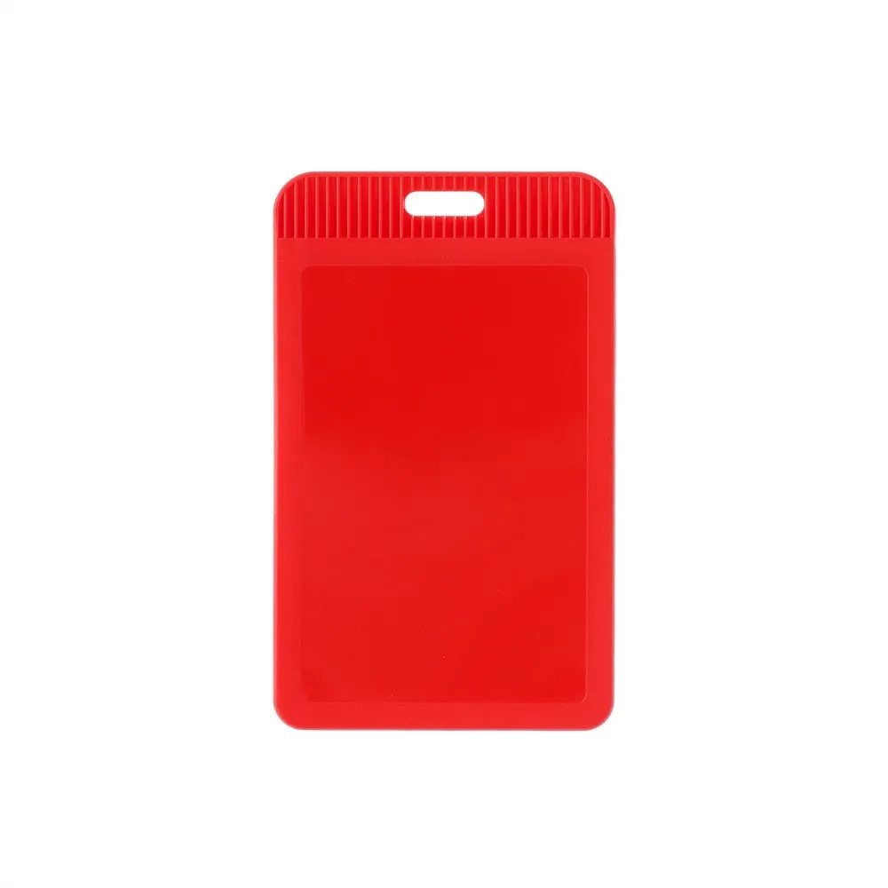 Porta crachá ou porta credencial em plástico resistente. Suporte com visor transparente removível e abertura superior para prender o cordão.