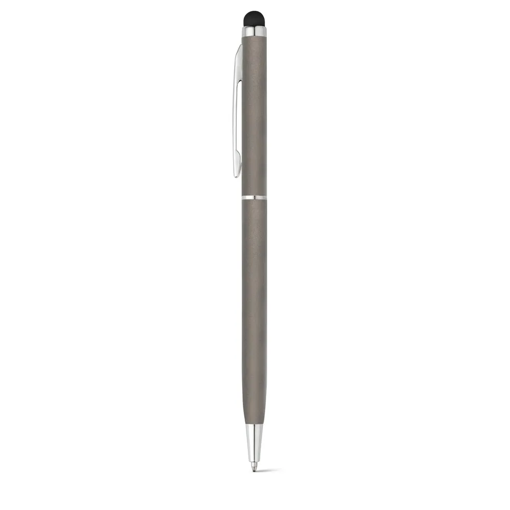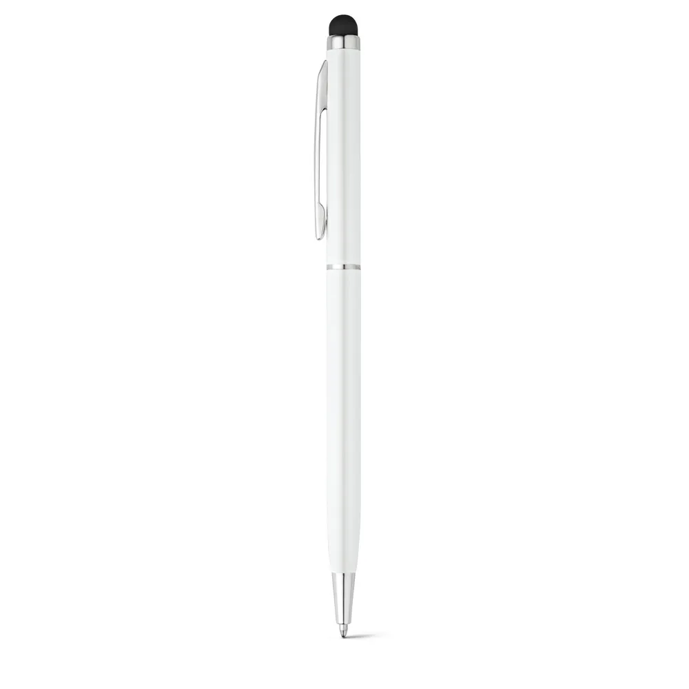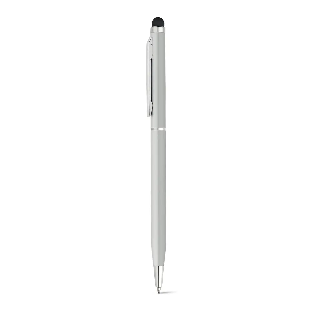 Esferográfica em alumínio com mecanismo twist, ponteira touch e clipe de metal. Escrita em azul até 1.5 km. ø8 x 135 mm